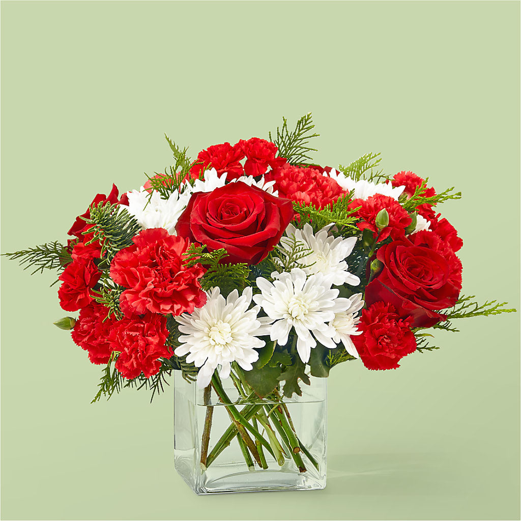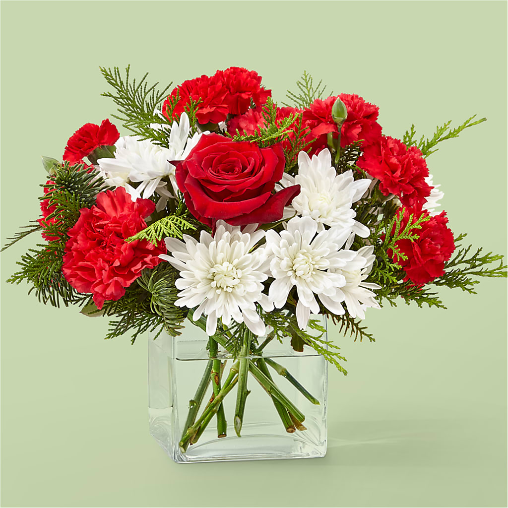 Swirl into the holidays with the Peppermint Chill Bouquet, a delicious mix of red and white florals artfully arranged.